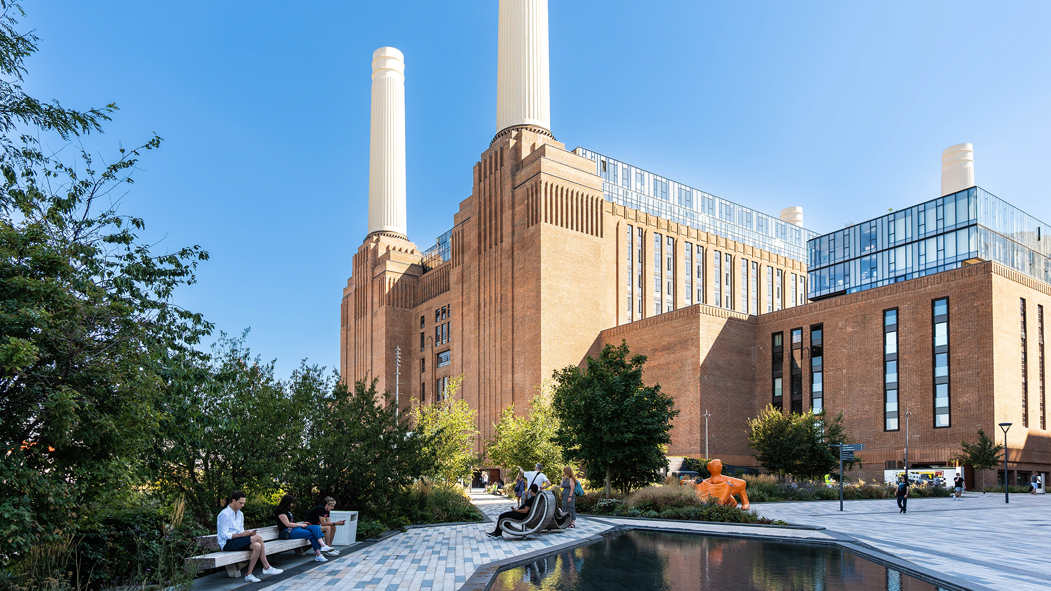 Battersea Power Station Art Deco industrial building in London with four chimneys and brick façade beside landscaped park Battersea Power Station was designed by Sir Giles Gilbert Scott and built between 1929 and 1935, with a later phase completed after the Second World War. The power station became one of London’s most recognisable industrial landmarks along the River Thames.