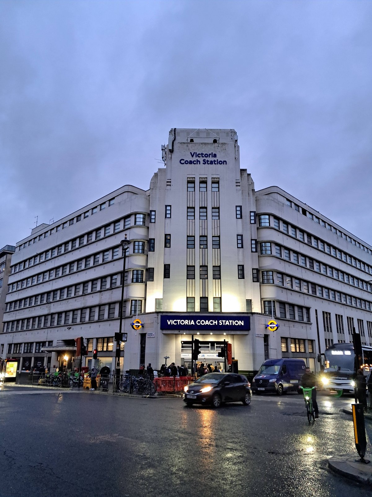 Front view of the historic Art Deco Victoria Coach Station building Victoria Coach Station was designed by Wallis, Gilbert and Partners and opened in 1932 as London’s main terminal for long-distance coach travel. The station was built to organise increasing road transport connections between London and other cities across Britain.