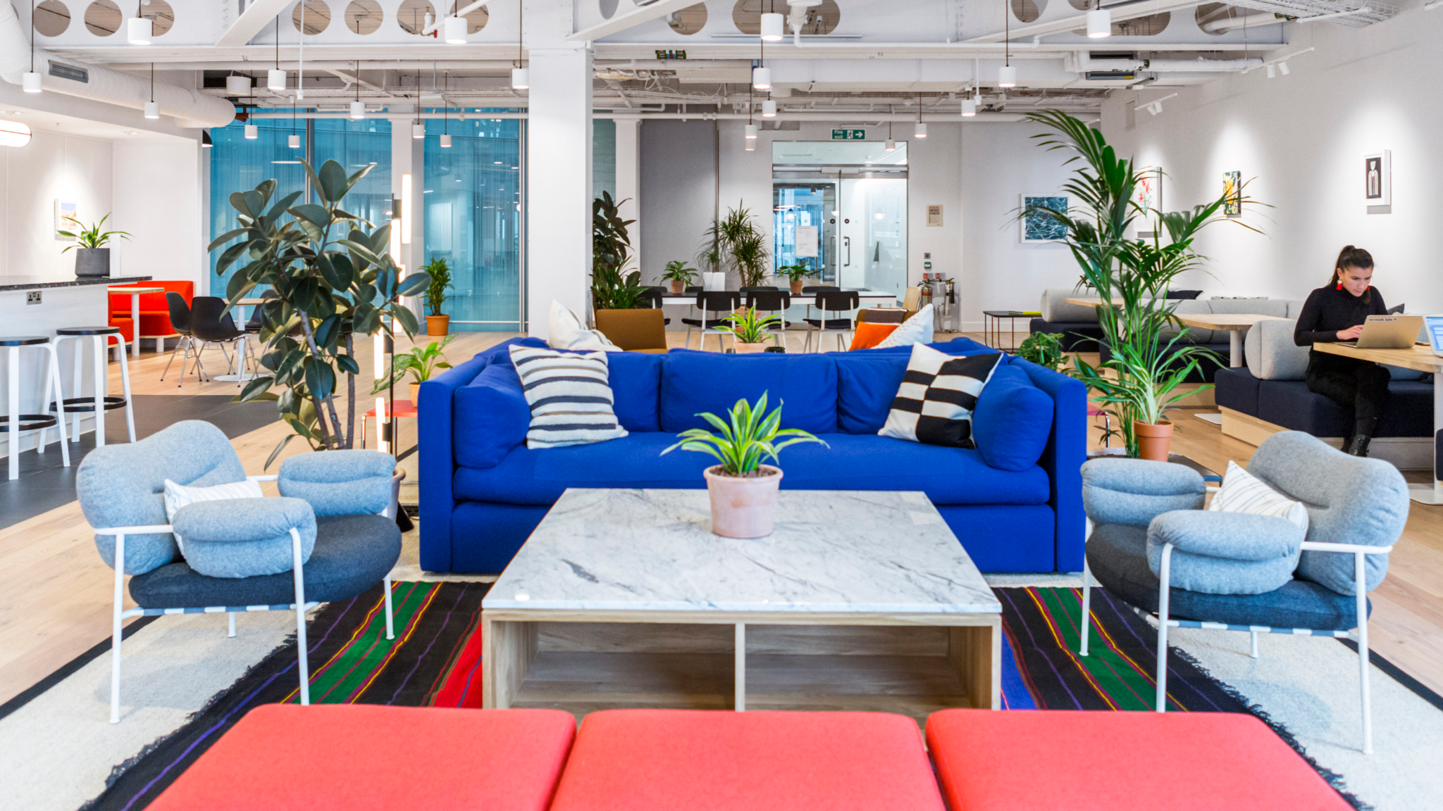 Stylish office lounge with a bright blue couch, marble table, and lush greenery in a sunlit, modern coworking hub Selecting a neighbourhood first simplifies every other decision. London’s districts function like micro-economies, each shaped by dominant industries and commuting patterns.