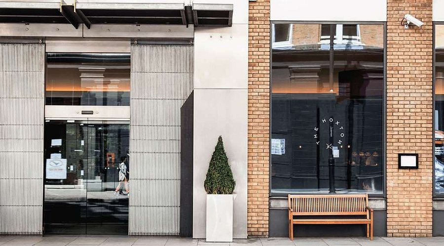 Contemporary hotel entrance of The Hoxton, Holborn, with large storefront windows and people walking by on the sidewalk The Hoxton offers a relaxed, stylish take on London luxury. Its 179 rooms feature contemporary design, smart tech, and cozy touches that make them feel like a home-away-from-home.