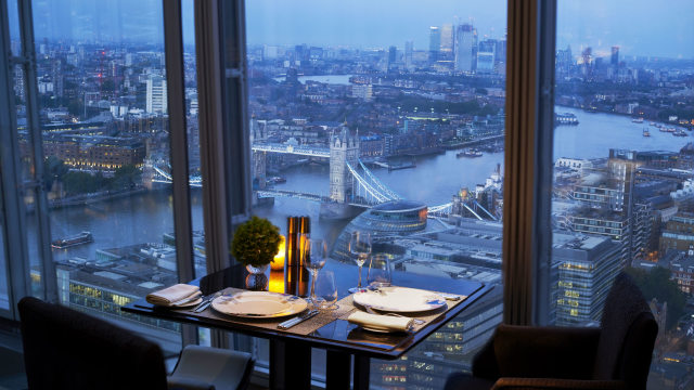 A romantic dinner table setting inside Shangri-La The Shard hotel Shangri-La occupies floors 34-52 of The Shard, offering unmatched views of London. Its 202 rooms feature floor-to-ceiling windows that make you feel above the city.