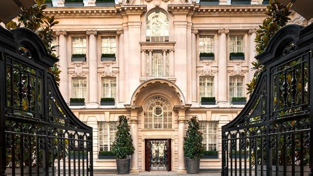 The elegant entrance of Brown's Hotel in Mayfair, London, featuring a doorman and flower boxes on the balcony Brown's Hotel, London’s oldest hotel, combines history with comfort. Its 115 rooms have English country house style with modern touches, giving a warm, lived-in feel. The English Tea Room serves classic afternoon tea, Charlie’s offers seasonal British dining, and The Donovan Bar mixes creative cocktails. The Rocco Forte Spa is peaceful and well-designed.