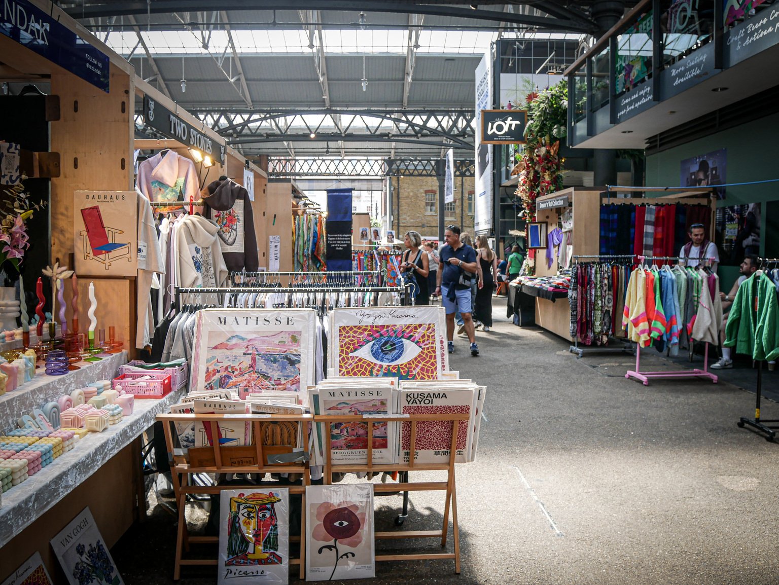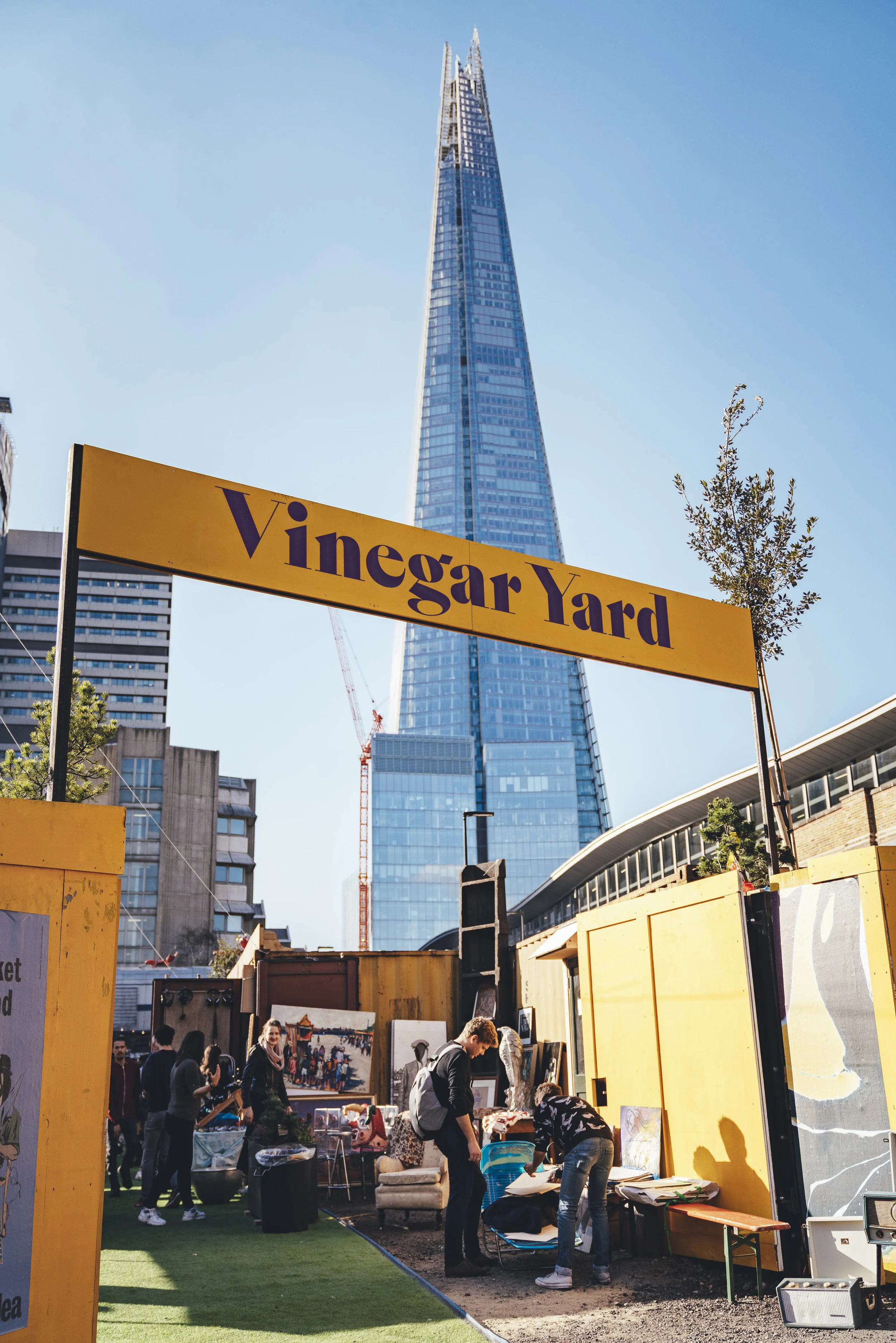 Vinegar Yard market in London, showing shoppers browsing antique stalls and art prints Vinegar Yard Flea Market is a weekend market with a focus on handmade, ethically sourced gifts and vintage clothing. Visitors can browse ceramics, statement necklaces, hats, kimonos, vintage bottles, and artisan crafts. The market also features street food stalls, a bar, and a dog-friendly garden, making it a relaxed and social place to spend the afternoon.