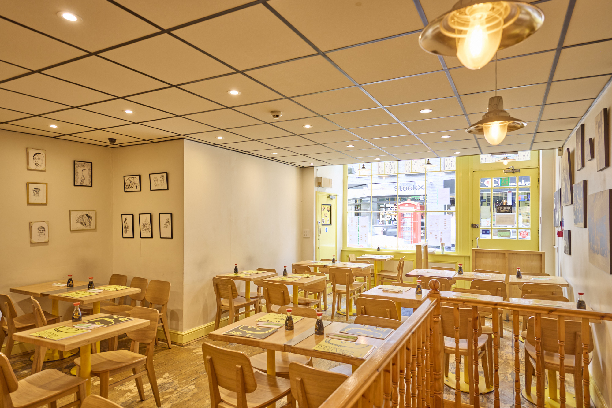 Taro dining area with simple wooden furniture, individual soy sauce bottles on tables, and industrial-style pendant lighting Taro is a small, cosy Japanese eatery that serves hearty ramen and rice bowls at fair prices. Only a 5-minute walk from Piccadilly Circus, it’s great for anyone craving comforting Japanese food without splurging. I recommend the tonkotsu ramen or the chicken katsu rice bowl, both generous and flavorful.