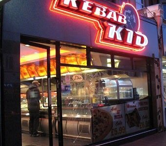 Exterior of Kebab Kid restaurant at night featuring a bright red neon sign and visible interior food counter For a classic late-night option, Kebab Kid is a Soho staple. A 6-minute walk from Piccadilly Circus means you can pop in after theatre shows or a long night out. The doner kebab with fries is generous, well-seasoned, and filling, perfect for anyone craving a hearty, inexpensive meal to keep them going.