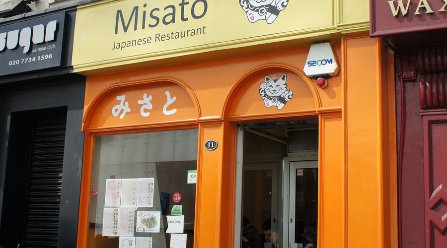 Misato Japanese Restaurant entrance with orange facade, yellow brand sign, and Maneki-neko lucky cat mascot Misato specialises in hearty Japanese katsu plates that are both filling and affordable. A quick 5-minute walk from Piccadilly Circus brings you to generous portions of crispy chicken or pork cutlets served with rice and cabbage. The chicken katsu curry is particularly popular, with a savoury, mildly spiced sauce that hits the perfect balance.