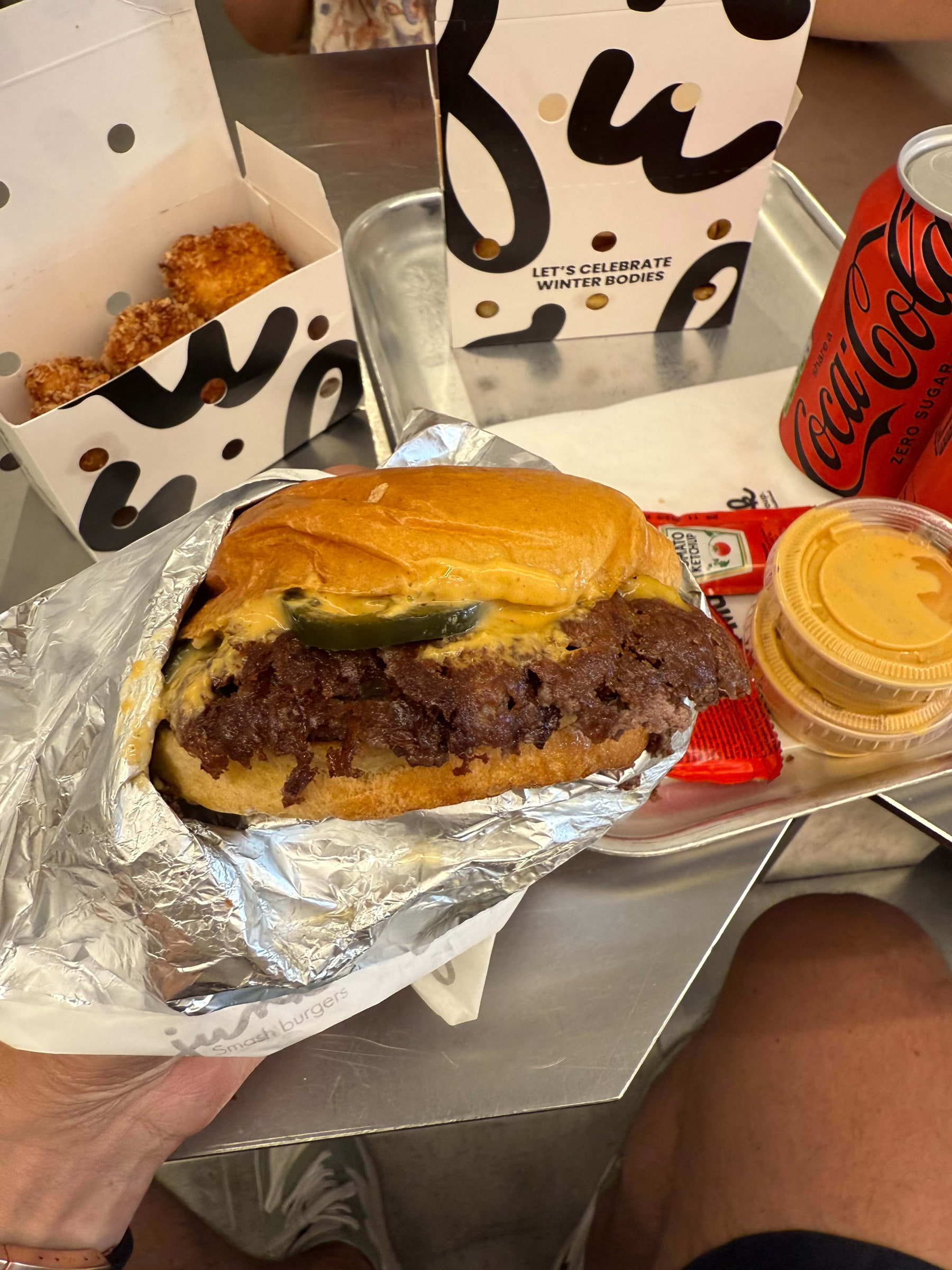 Juicy smash burger with melted cheese and jalapeños held in foil, next to Bleecker Burger branded packaging Junk Soho is a fast-casual burger spot that elevates classic comfort food with inventive toppings. A 6-minute walk from Piccadilly Circus gets you a seat in this lively venue. The Dirty Chicken Burger or the Truffle Mushroom Burger are highlights, juicy, flavorful, and perfectly cooked.