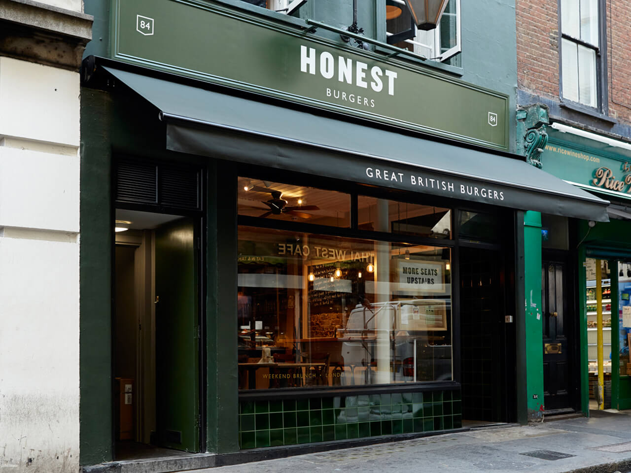 Honest Burgers restaurant storefront with signature green branding and large windows showing the interior dining area Honest Burgers is known for its fresh, no-nonsense approach to one of Britain’s favourite comfort foods. A 7-minute walk from Piccadilly Circus takes you to a cosy Soho spot where the beef is locally sourced and cooked just right. The classic Honest Burger with rosemary friesis a standout, juicy, flavorful, and satisfying without unnecessary extras. What makes it great is the focus on quality and simplicity. Everything from the patty to the bun is carefully chosen, delivering a consistently delicious burger at a fair price. Perfect for lunch, dinner, or a casual bite between sightseeing in Soho.