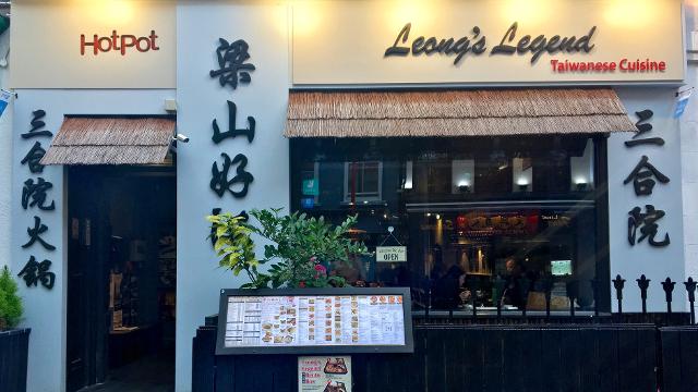 Leong's Legend in London's Chinatown district, showcasing its specialty in Taiwanese cuisine and hot pot with a large menu board displayed on the sidewalk Leong’s Legend is all about dumpling mastery, particularly their famous Xiao Long Bao. A 5-minute walk from Piccadilly Circus, it’s an easy stop for both lunch and dinner. Order the soup dumplings with pork filling, steamed to perfection; each bite bursts with rich broth and delicate seasoning.
