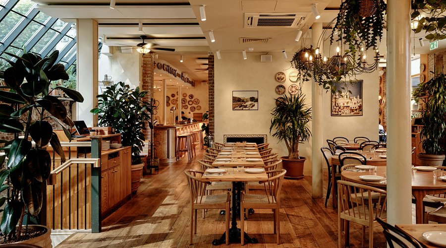 Modern restaurant dining area with long wooden tables, woven chairs, and walls decorated with artisanal ceramic plates Casa do Frango brings Portuguese-style grilled chicken to Soho at an affordable price. A 7-minute walk from Piccadilly Circus, the restaurant serves juicy, tender chicken marinated in piri-piri spices. Pair it with sides like peri-peri fries or coleslaw, and you have a simple but satisfying meal that packs flavour without breaking the bank.
