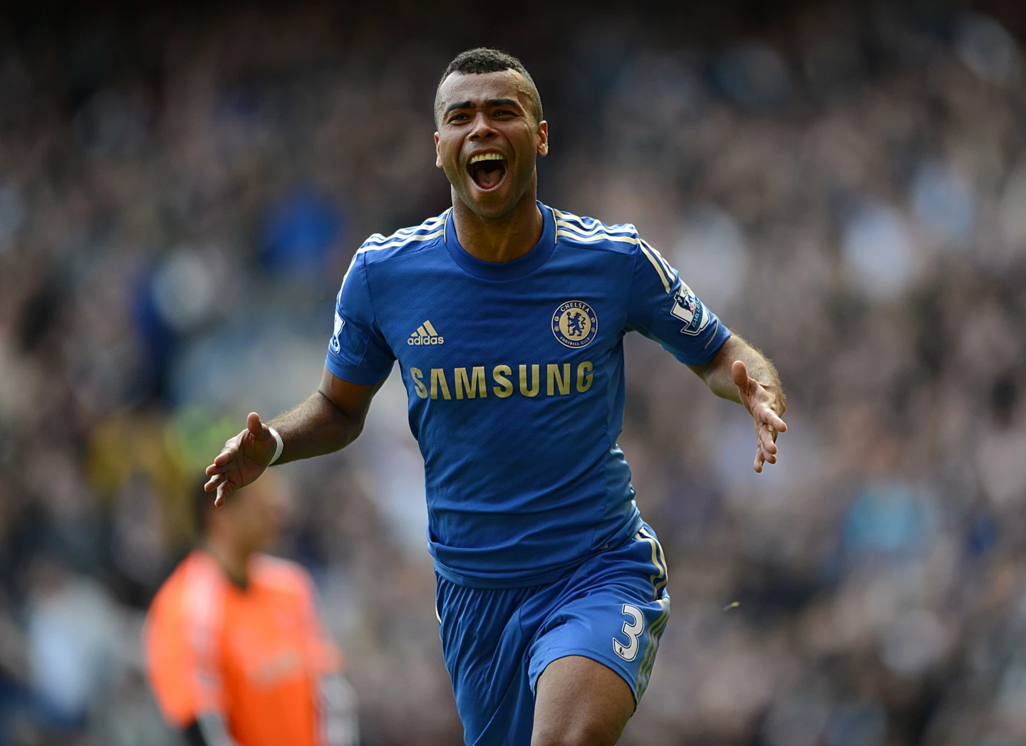Chelsea player celebrates goal, arms outstretched shouting Ashley Cole is arguably the finest left-back England has ever produced, and his game was forged in the East End. Born in Stepney and raised in Bow, he grew up playing in the shadow of the old West Ham stadium, though he famously joined Arsenal.