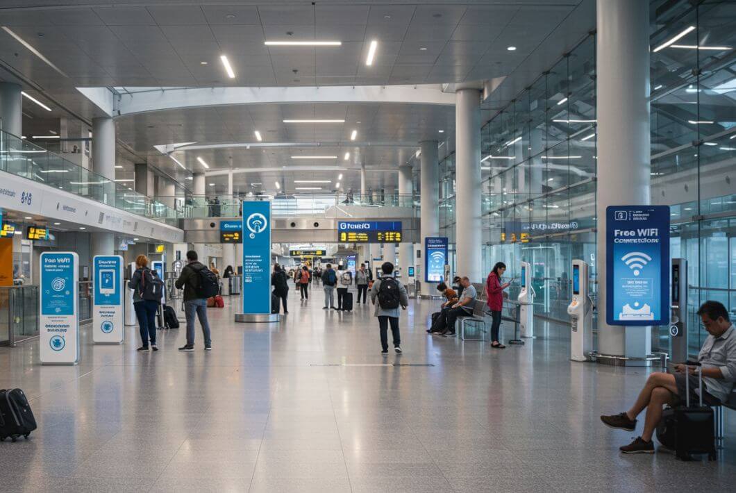 As the UK’s busiest international gateway, Heathrow provides WiFi access throughout all terminals. The network is clearly branded, and connection typically involves selecting the official airport network and completing a short sign-in process. Because of the airport’s size and passenger flow, coverage is designed to work across departure lounges, arrival halls, and baggage claim areas.