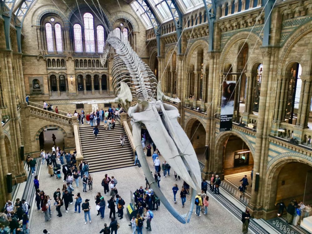 Large whale skeleton hanging in the grand Romanesque entrance hall of London's Natural History Museum with tourists below Museums are underrated connectivity “bases” for tourists in London. Unlike cafés or busy streets, they offer indoor seating, reliable power outlets, and longer dwell times, making them perfect spots to check maps, refresh travel apps, or upload photos. Many major institutions now openly provide free WiFi in London for tourists, allowing you to plan your day without worrying about roaming fees or unreliable mobile data.