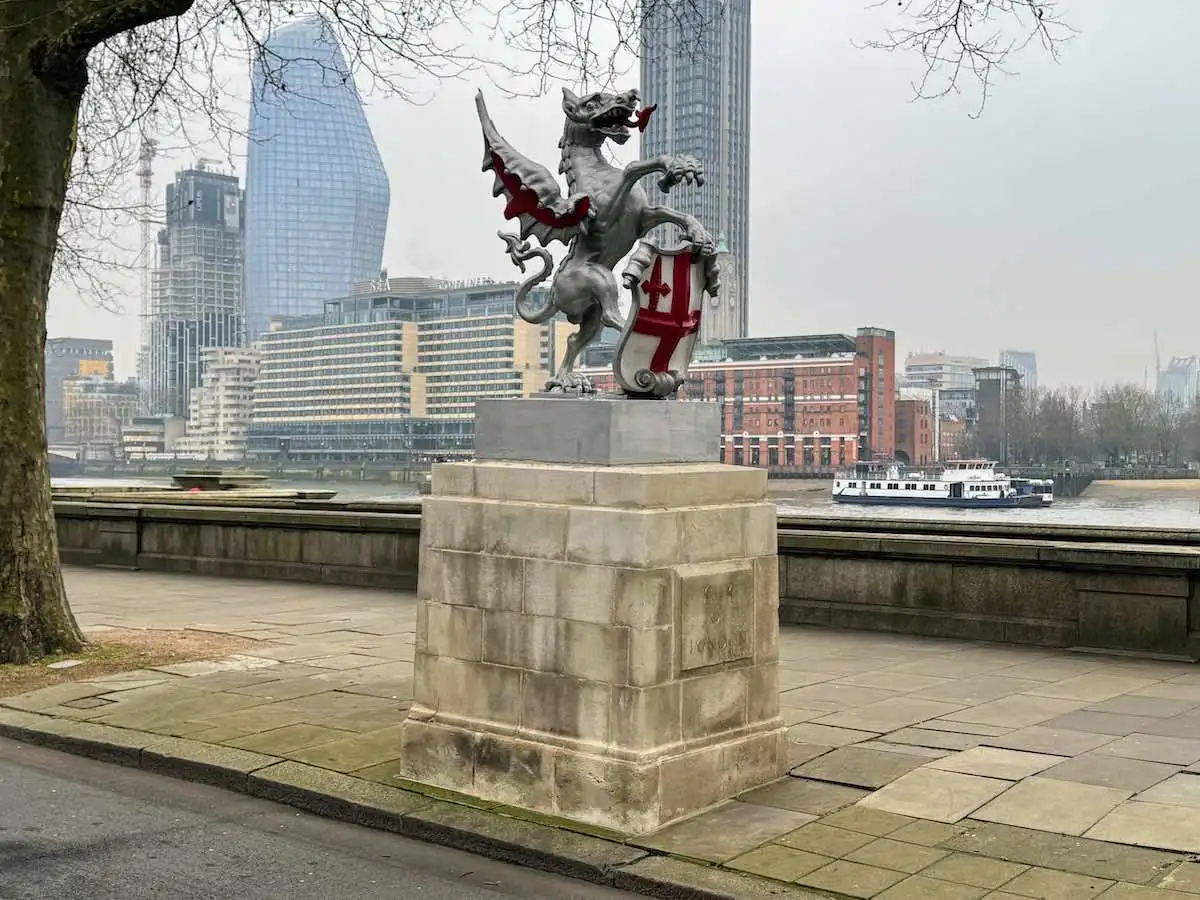 At the major road entry points into the City of London, you will find silver dragon statues mounted on plinths. These are the City's boundary markers, placed at the historic entry points to the Square Mile to announce that you are entering a distinct jurisdiction. The dragons are heraldic figures derived from the City of London's coat of arms, and their placement at the boundary reflects a tradition of marking the City's limits that goes back to the medieval period.