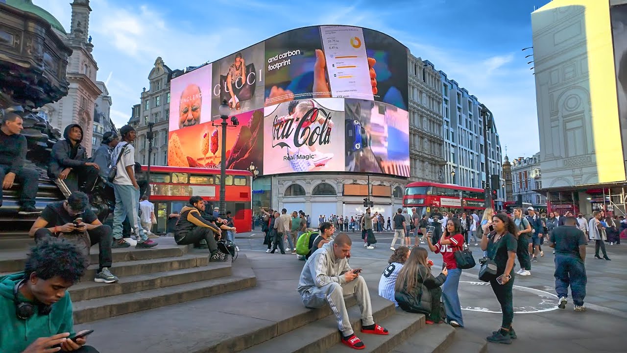 A crowded place in London featuring the massive curved LED advertising screens, two red double-decker buses, and people sitting on the steps of the Shaftesbury Memorial Fountain After three days of major landmarks and museums, Day 4 shifts into London’s livelier, more theatrical core. This area blends historic market halls, boutique-lined streets, and the energy of the West End theatre district.