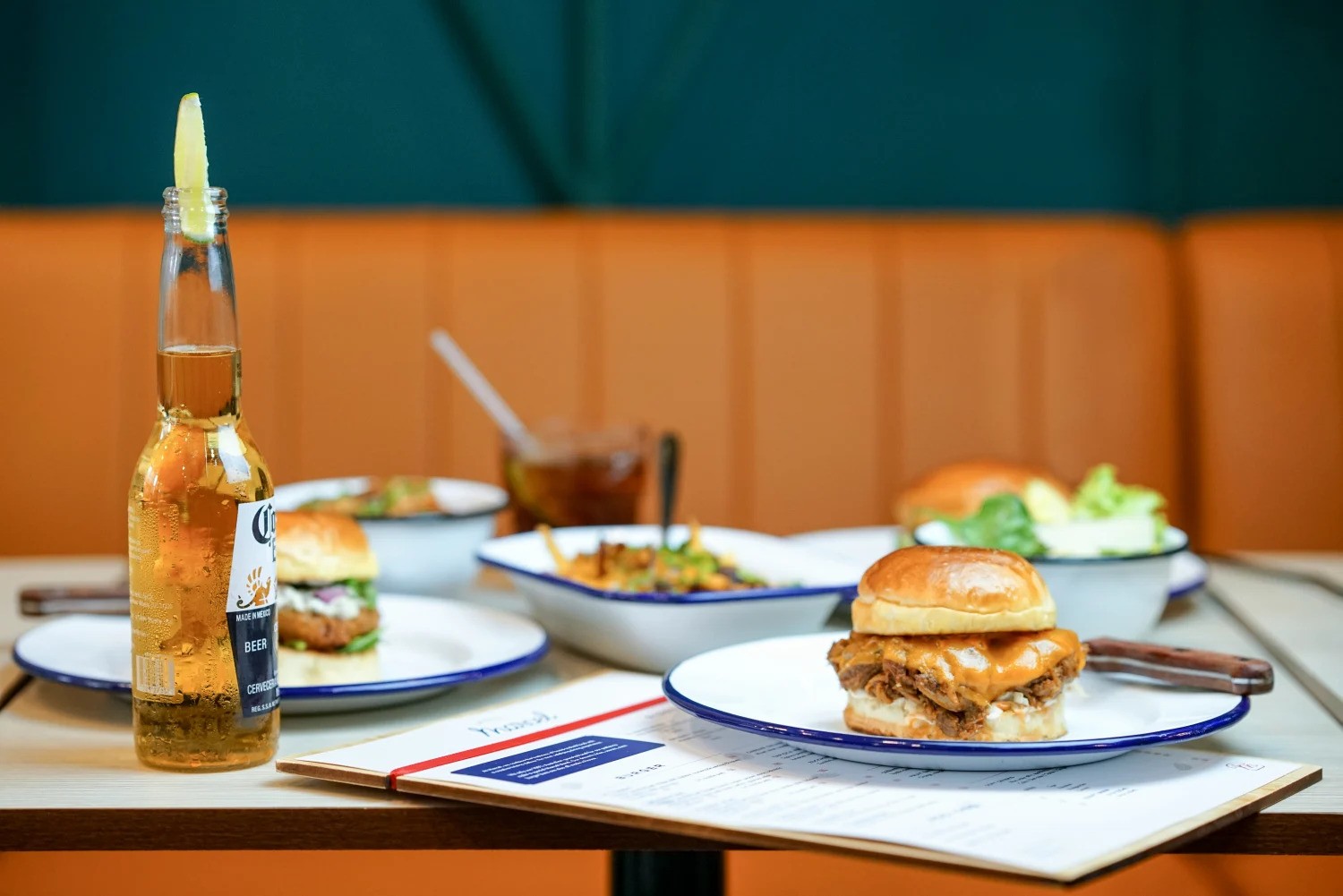 A table set with various plates of food and a bottle of beer London has many ways to eat well without spending a lot. Supermarkets like Tesco, Sainsbury’s and Boots sell a sandwich, snack and drink for about £3 to £4. Pubs often serve filling lunches for £8 to £12 that cost less than evening menus.