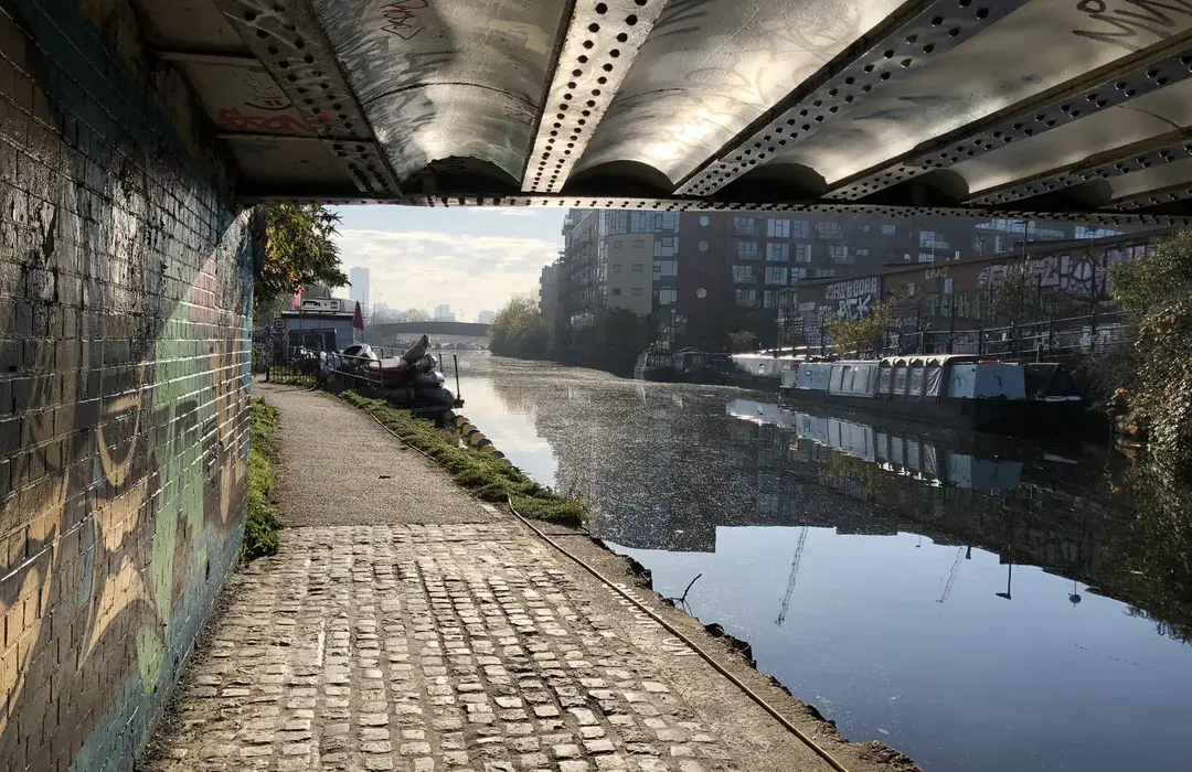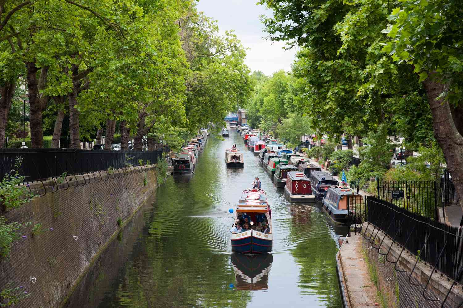 A highly recommended, peaceful stroll that follows the towpath past colorful narrowboats and classic urban scenery.