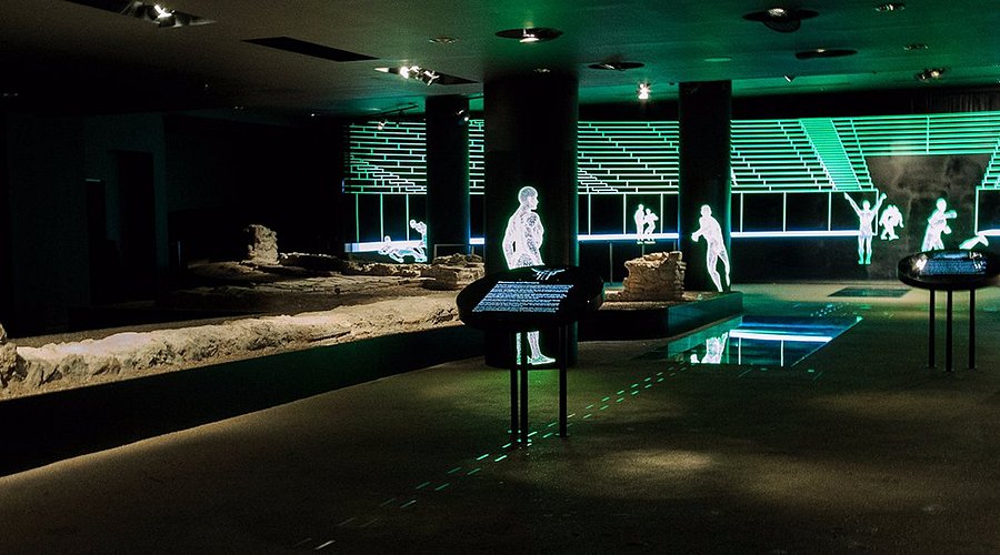 A dark, atmospheric museum hall where ancient ruins are displayed alongside glowing green digital projections Beneath the Guildhall Art Gallery are the remains of Londinium’s Roman amphitheatre, where crowds once watched gladiator fights and animal shows. Its location was unknown until 1988, when builders uncovered the large oval arena deep underground. The amphitheatre was built around AD 70 and later rebuilt in stone. Unlike many famous landmarks in London, this site hides its significance below ground, revealing its scale only once you descend into the gallery basement. At ground level, a circle of dark stones in Guildhall Yard marks the shape of the arena. Below, you can see parts of the curved walls, the main entrance, and a drain that once carried away blood and water. The space could hold about 6,000 people.