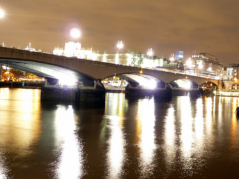 Night view of Waterloo Bridge illuminated over the River Thames in London Waterloo Bridge features illuminations in constant movement, speaking to the flowing river beneath. This elegant five-arched structure deserves its reputation as London's most beautiful Thames crossing.