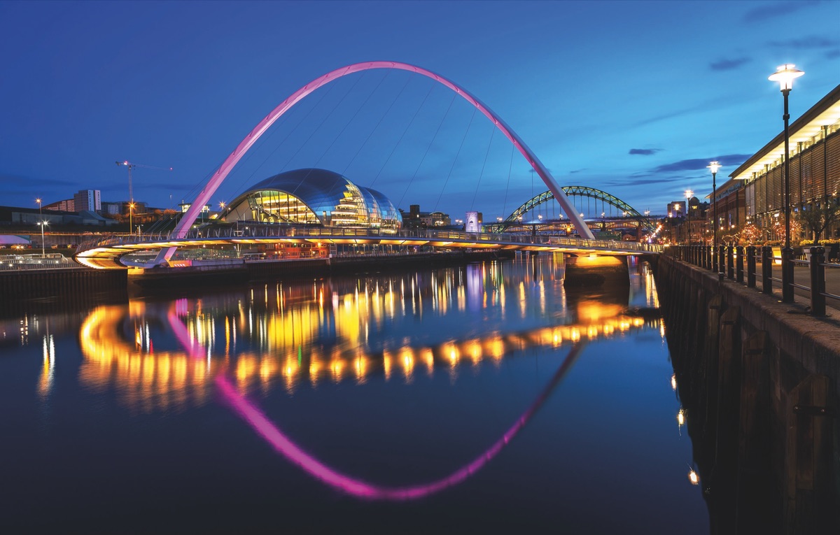 The Gateshead Millennium Bridge at night with the Sage Gateshead building in the background Millennium Bridge features a pulse of light emphasizing people on this pedestrian bridge, casting light on their faces. As London's first new pedestrian Thames crossing in over a century, it deserves illumination, celebrating the human scale.