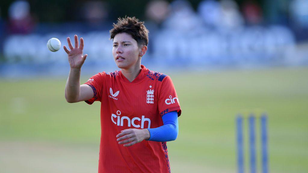 England cricketer in red jersey tossing ball If your article wants a genuinely London-born thread you can pull without drifting into where do they live, Issy Wong gives you that safely.