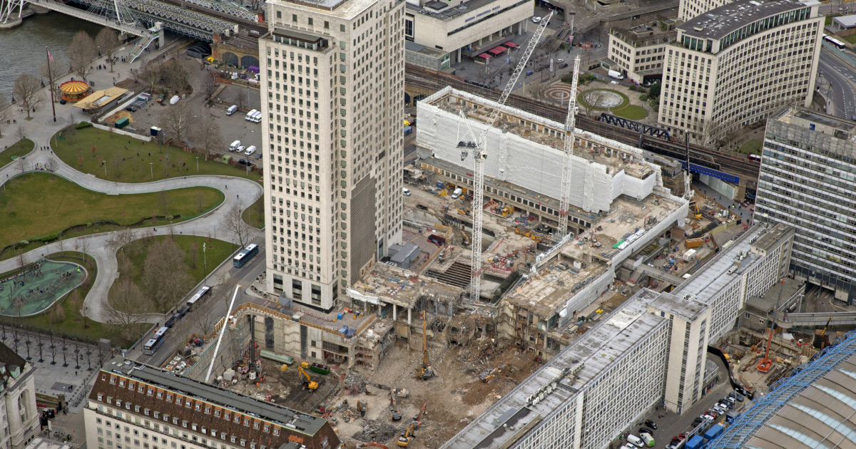 The Shell Centre complex on the South Bank, London, undergoing massive construction and redevelopment Shell Centre stands on the South Bank beside the Thames, close to Waterloo Bridge. The original tower, built in the 1960s, was once one of London’s tallest buildings and a symbol of modern business at the time.
