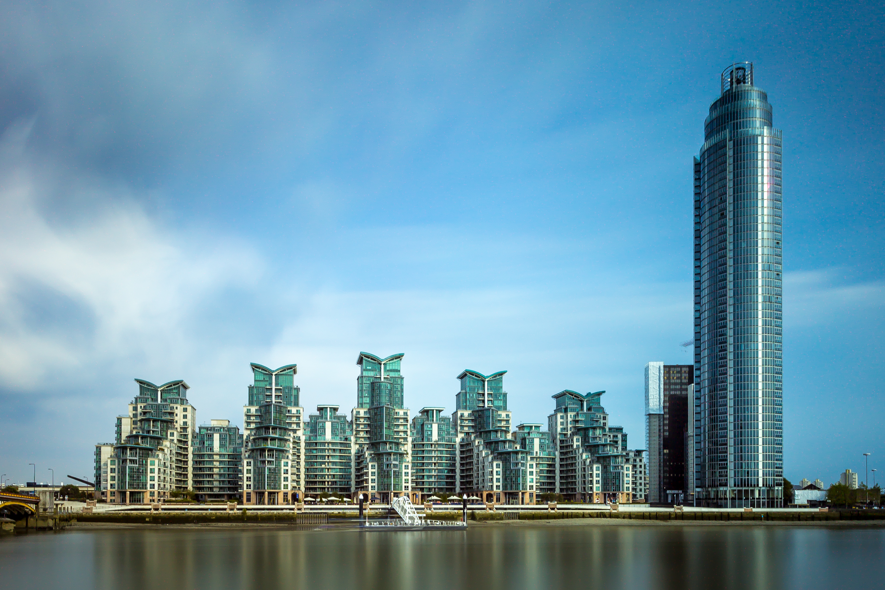 The Tower, Chelsea Creek, a modern light-colored apartment building, overlooks a small decorative bridge and canal on a sunny day Rising to 110 meters, The Tower at Chelsea Creek brings modern high-rise living to West London. Completed in the early 2020s, it sits beside landscaped canals that give the area a peaceful, almost European feel. What I like most is how the building contrasts with the traditional low-rise terraces nearby. It shows how tall living is reaching neighbourhoods that once never imagined skyscrapers.