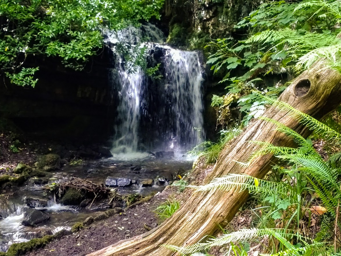 Small waterfall in lush forest beside fallen log On the north-western edge of the region, near the village of Pontneddfechan, the geology shifts dramatically. Known as Waterfall Country, this area boasts the highest concentration of cascades in Wales.