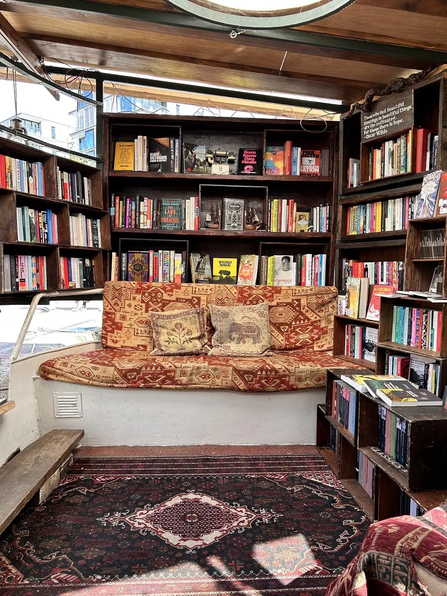 The owners often host live jazz sessions, poetry readings, and book launches, turning this little boat into one of London’s most atmospheric literary spots. It’s open every day from midday until early evening, and it’s one of those rare places that makes you forget time exists.
