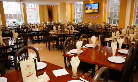 Long, set dining room interior of a Brick Lane Curry House (like Sheba) with red napkins and white tablecloth Brick Lane is still one of the easiest places to eat curry cheaply, as long as you ignore the pushy people trying to drag you into random deals. I pick a calm, friendly restaurant, sit down, and order at my own pace.