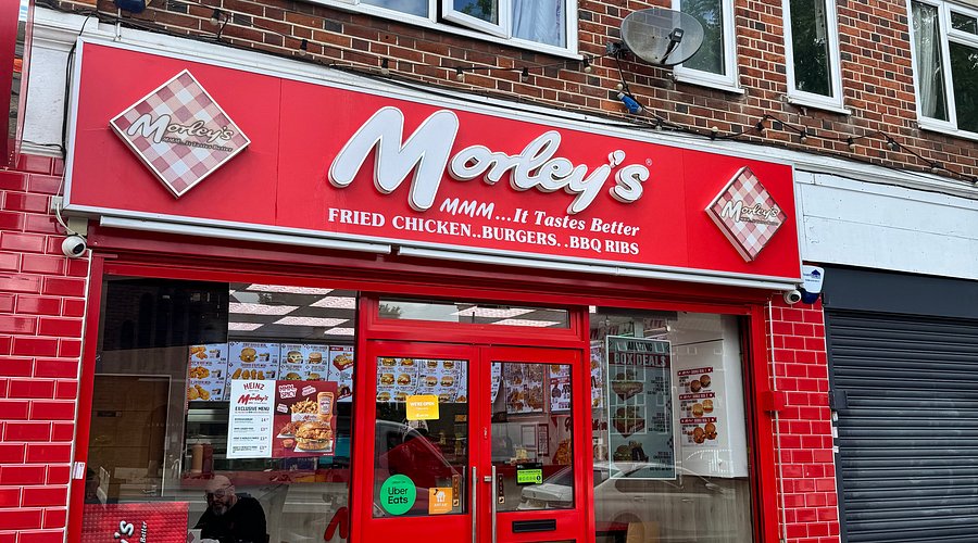 Morley's Fried Chicken shop with red tiles, glass doors, and large windows showing menu items Morley’s is pure London late-night culture, and I love it for what it is: cheap, hot, filling food that hits the spot. It’s not trying to be fancy, and that’s why it works. You walk in hungry, you walk out sorted, and your wallet barely feels it.