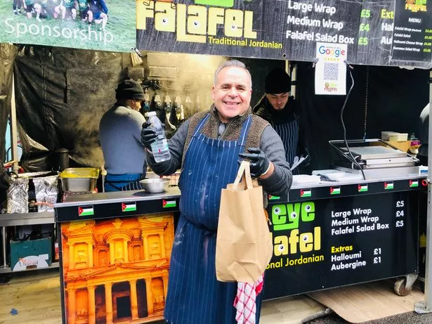Food market stall selling falafel wraps and salad boxes, featuring a menu board and Jordanian flag decorations This isn’t a fancy restaurant, but I can’t ignore how good the value is. Whitechapel Market has several food stalls, and the falafel stand is one of the cheapest ways to get a full meal in the area. It’s fast, filling, and always busy for a reason.