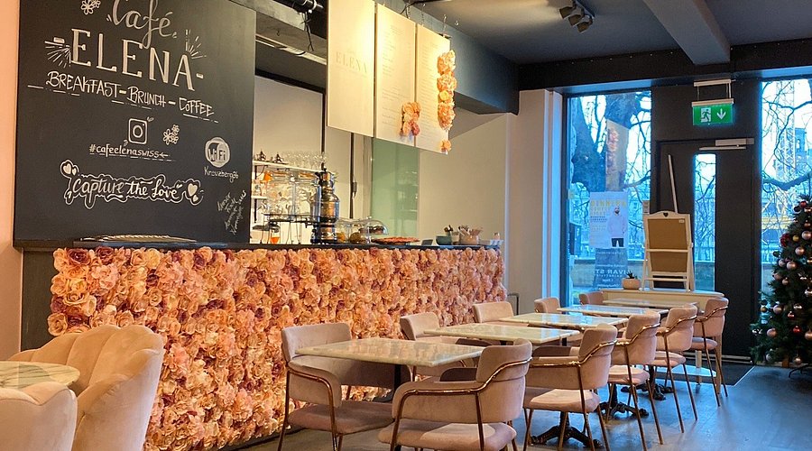 Stylish coffee shop interior for breakfast and brunch with floral decor and festive Christmas tree Around UCL and Bloomsbury, there are loads of student-priced cafés, and Cafe Elena is a good example of the kind of place I use for cheap lunches. These cafés may not look flashy, but they give you solid, filling food at prices that make sense.