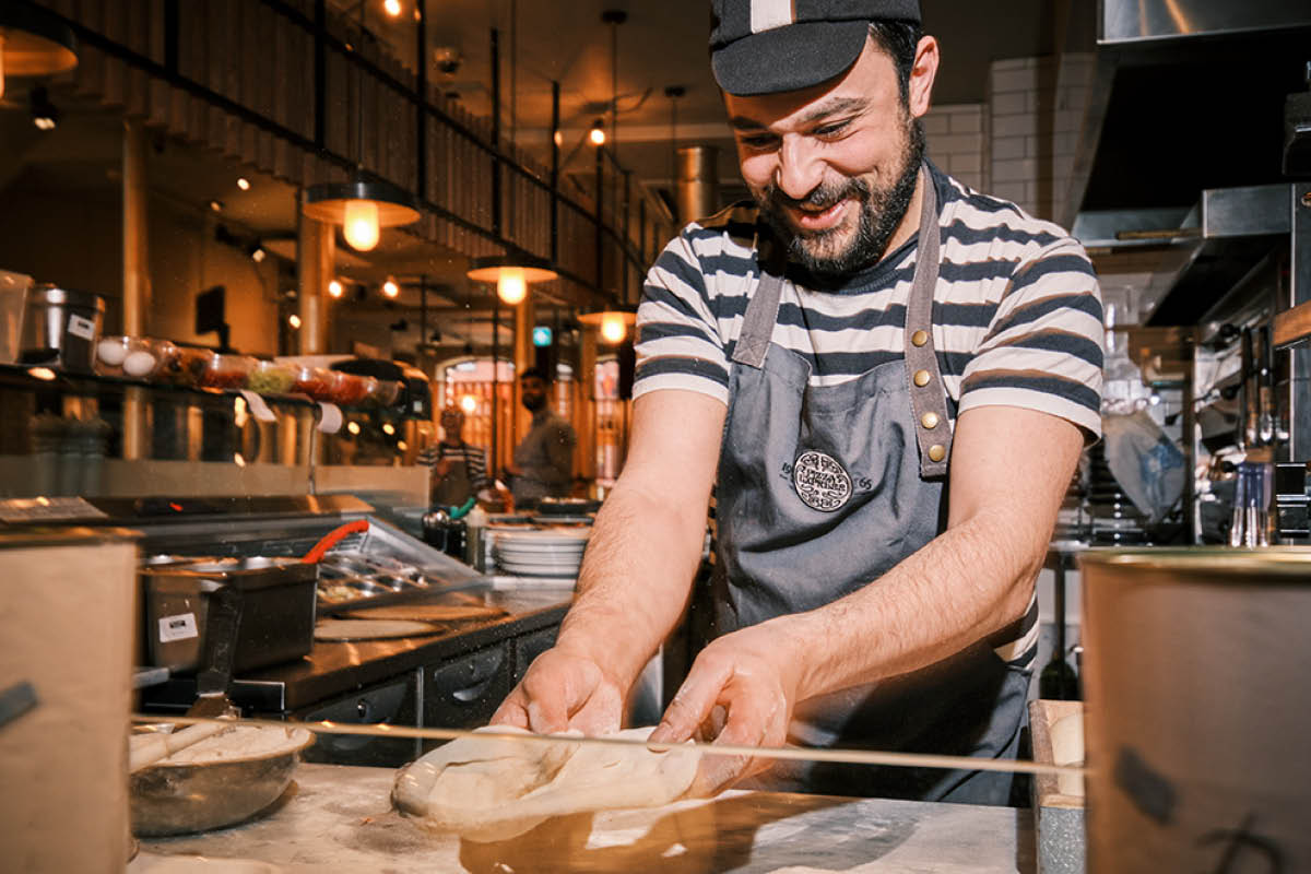 A bearded pizza maker wearing a cap, hands stretching dough for the Pizza Express Lunch Set menu I know Pizza Express is a chain, but I still recommend it for budget eating because the lunch set deals are reliable. Sometimes you just want an easy, comfortable place where everyone will find something they like especially if you’re with someone picky.