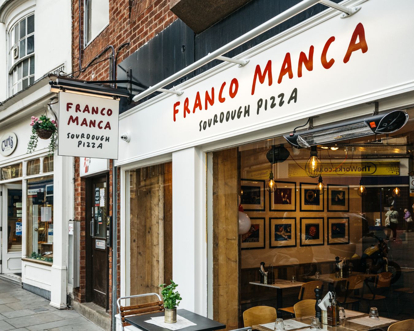 Pizza restaurant entrance, Franco Manca, showing outdoor seating and large windows Franco Manca is proof that chain restaurants can still be excellent. These sourdough pizzas are made with organic ingredients and cost £7-10. That's it. Real Neapolitan-style pizza for less than a tenner in central London.