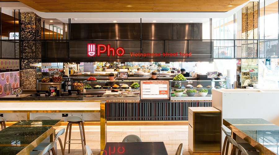 Restaurant service counter at Pho showing fresh ingredients and kitchen staff working Pho is my dependable chain when I want a big bowl of something warming that won’t wreck my budget. The restaurants are casual, bright, and easy to walk into without booking. It’s also a great choice if you’re with someone who’s picky or needs veggie or gluten-free options.