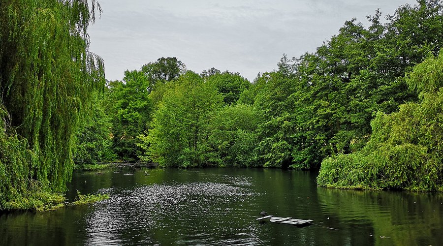 The parkland includes formal gardens, woodlands, and open fields. A series of lakes attract waterfowl, and the peripheral paths along the park's edges offer particularly quiet walks.